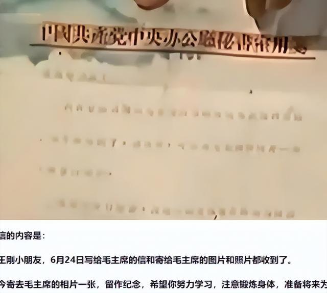 少年王刚有一天饱读起了勇气,提笔给毛主席写了一封信,信封上径直写着"毛主席收",然后把信寄了出去。