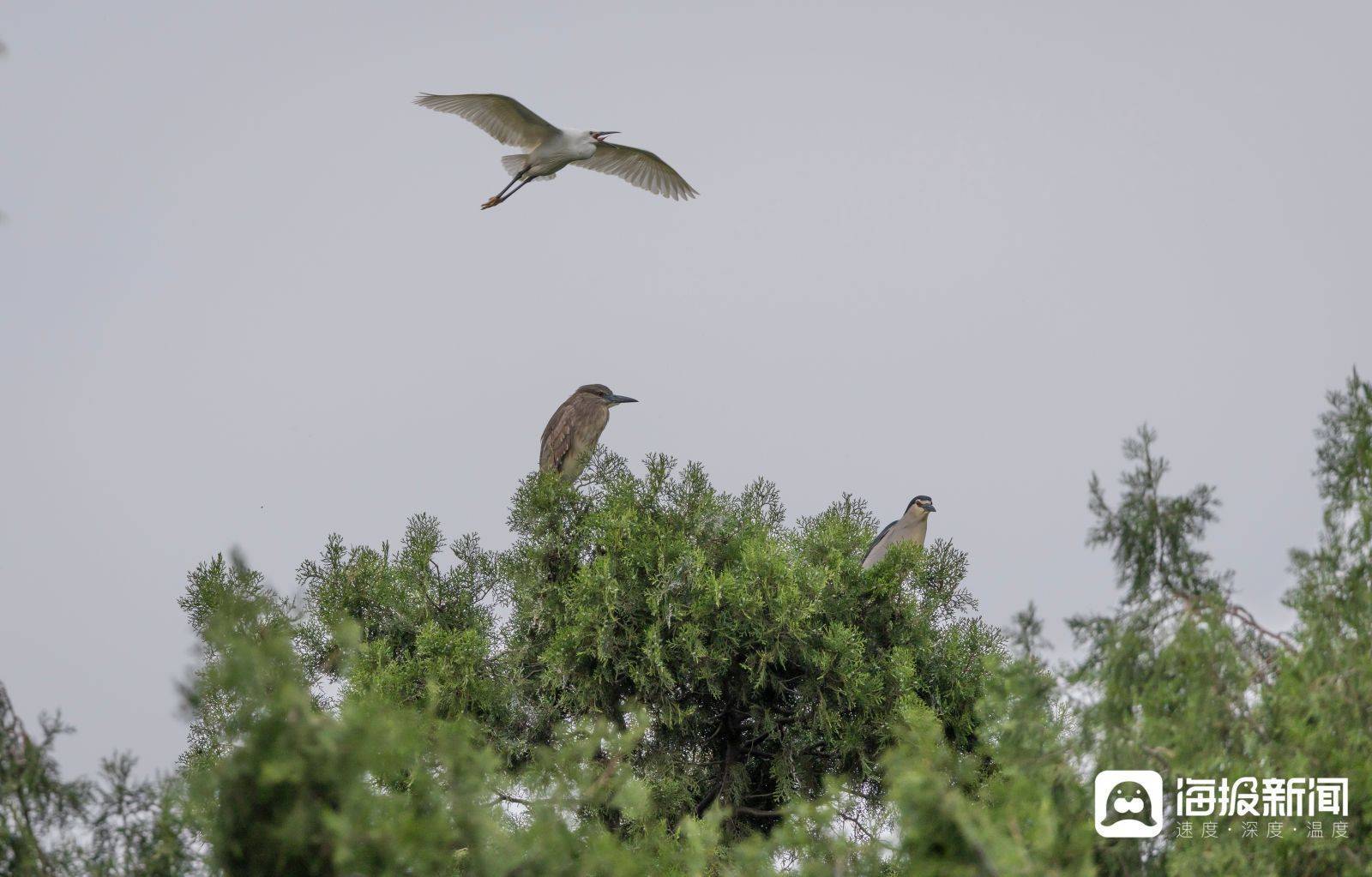 《鹭鸟舞翩跹》2026年4月14日,山东枣庄滕州市七星湖湿地公园隔邻的松林迎来白鹭、夜鹭栖息筑巢,松树强盛挺拔,鹭鸟或栖息枝端,或凌空遨游,呈现出一片东谈主与当然息争共生的春日画卷。彭慧英 摄